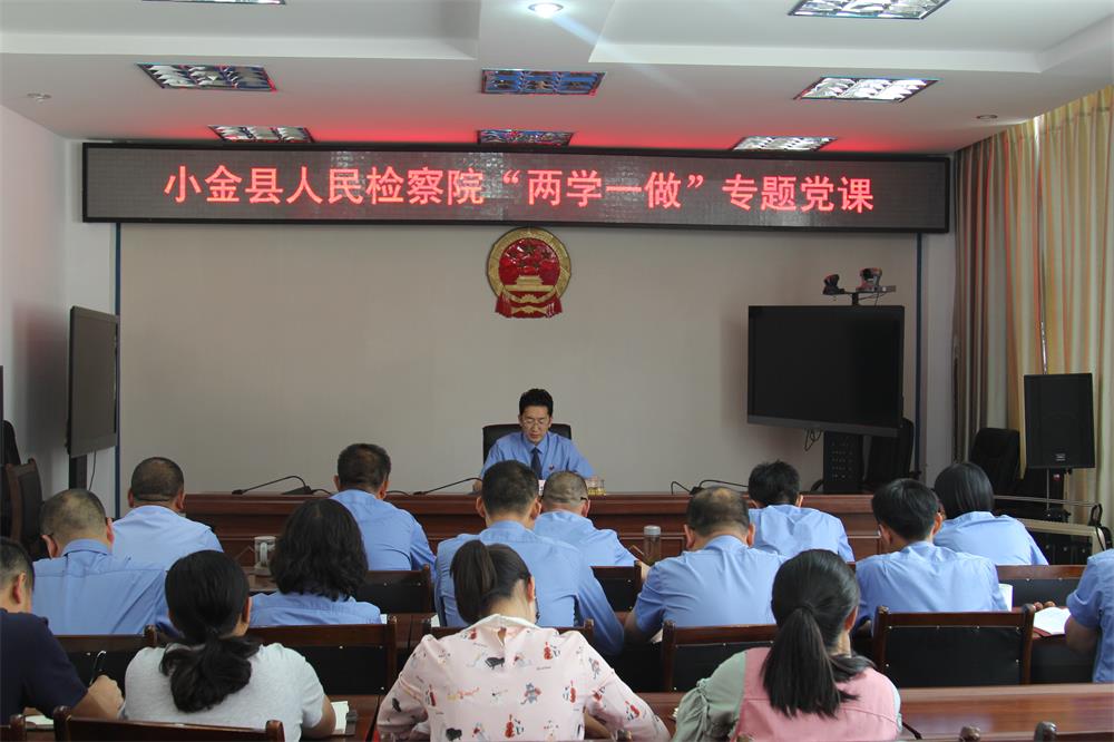 王应强检察长围绕“深化认识,坚定检察工作正确政治方向”、“ 坚定信念,筑牢全面加强党性修养的精神支柱”、“ 从严治检,推动落实小金检察全面从严治党”三个方面深刻分析了坚定的理想信念对共产党人实现人生价值的重要意义。课上,王检向全体党员干警提出希望:希望所有党员干警通过开展“两学一做”,进一步凝聚起推动小金检察健康快速发展的坚定信心和强大合力,按照年度计划把各项工作一步一个脚印的往前推,做到思想上有新提高、作风上有新变化、工作上有新举措,努力推动小金检察工作科学健康发展。