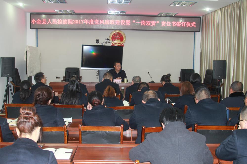 为加强检察机关党风廉政建设和自身反腐败工作,明确班子成员及部门负责人在党风廉政建设中的责任,保证严格、公正、文明、廉洁执法,3月6日,我院召开2017年度党风廉政建设专题部署会议,并举行了《党风廉政建设责任书暨“一岗双责”责任书》签订仪式。6名班子成员分别向检察长递交责任状,10名部门负责人分别向分管领导递交责任状,层层签订、逐级压实责任。