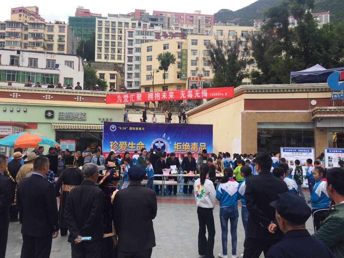 6月26日国际禁毒日当天,我院与小金县禁毒委各成员单位在和谐广场联合开展禁毒宣传活动。活动现场,我院干警认真向群众宣传毒品危害和安全常识,并热情解答群众的提问。此次活动主要以悬挂宣传标语、设立咨询台、交流讲解、发放宣传资料(部分资料采用“汉藏双语”宣传)、展览毒品样本、播放禁毒宣传短片等宣传形式,多角度、全方位地宣传禁毒工作,警示吸毒行为对社会和家庭造成的危害,强调全民禁毒的必要性。